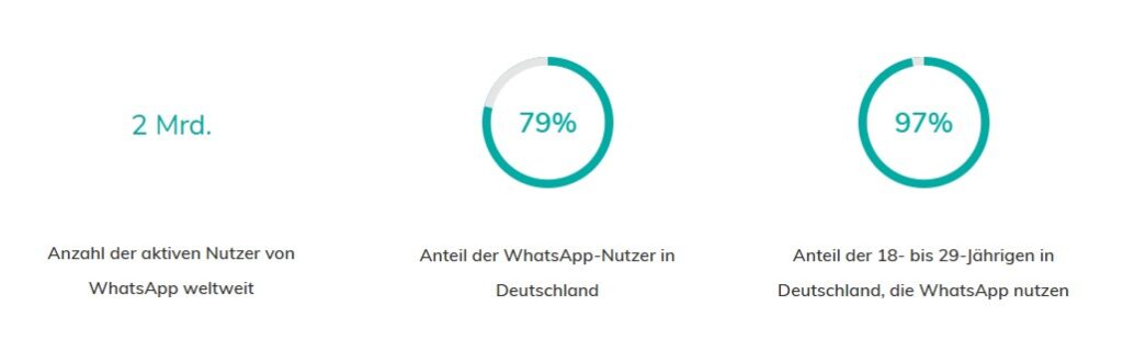 "Weltweit kommt Whatsapp auf über 2 Milliarden Nutzer und der Anteil der 18-29-Jährigen in Deutschland, die Whatsapp nutzen liegt bei 97%₁"
